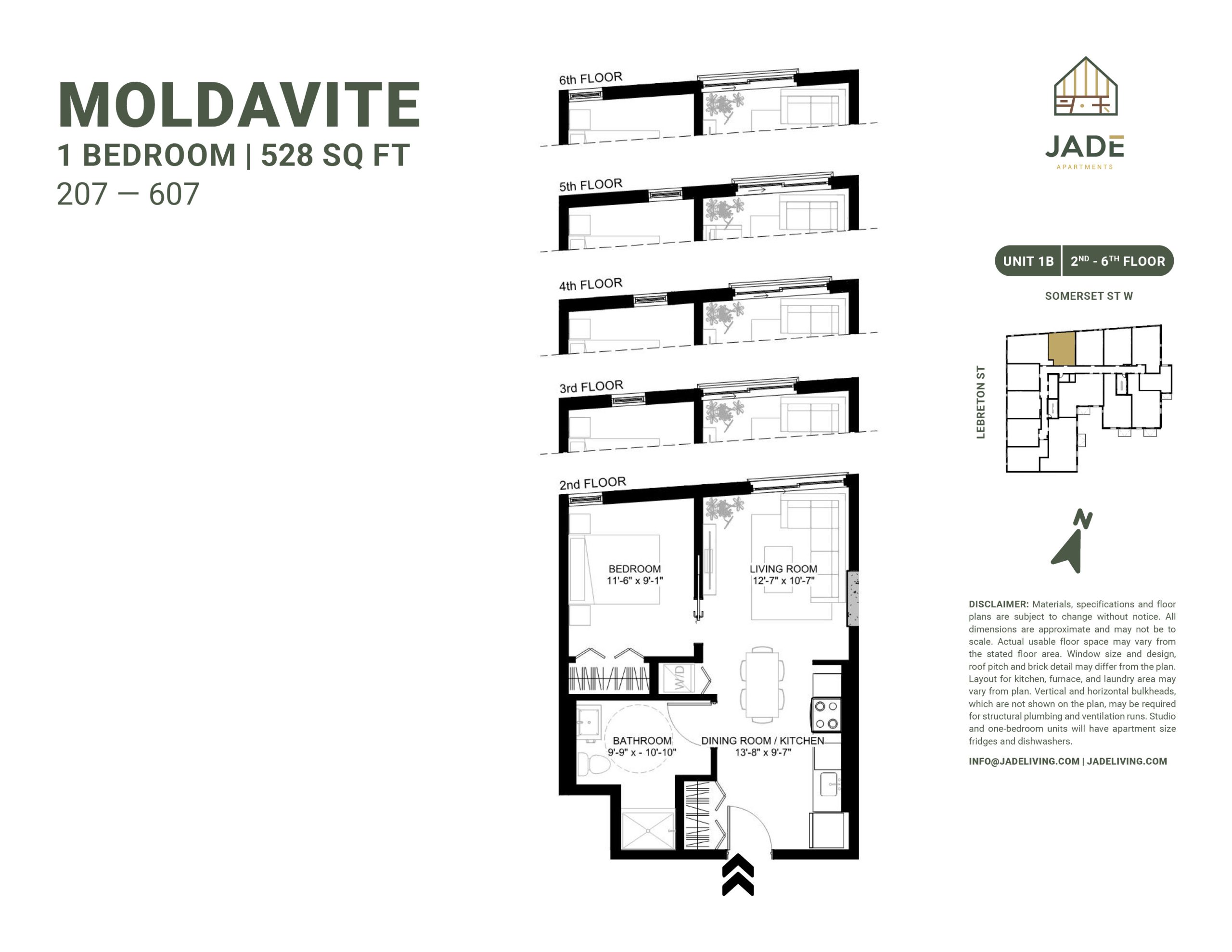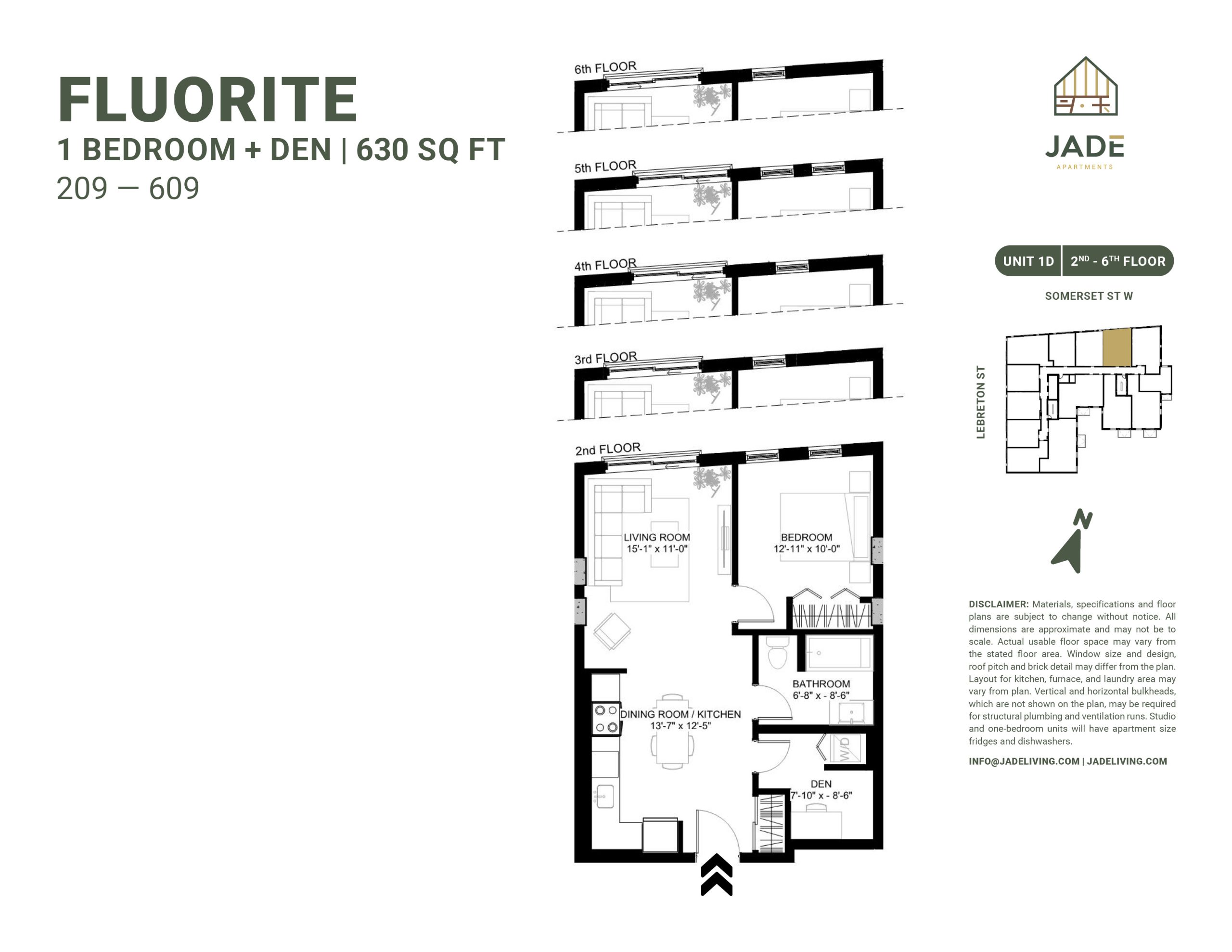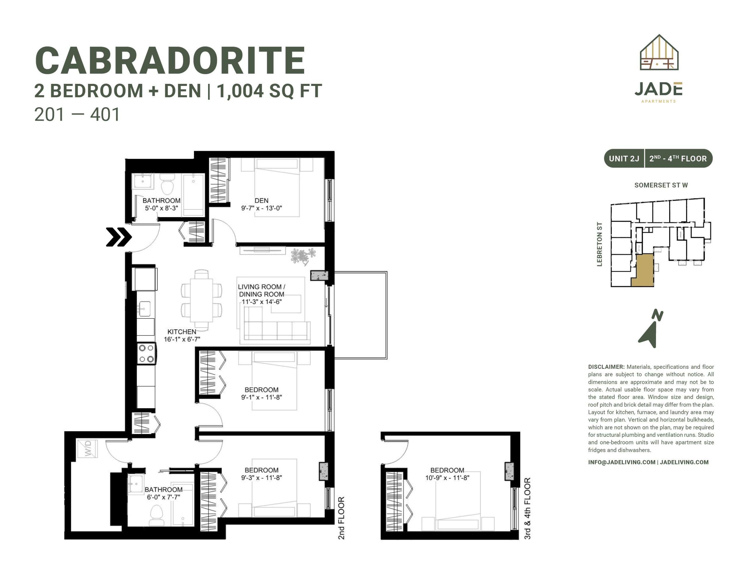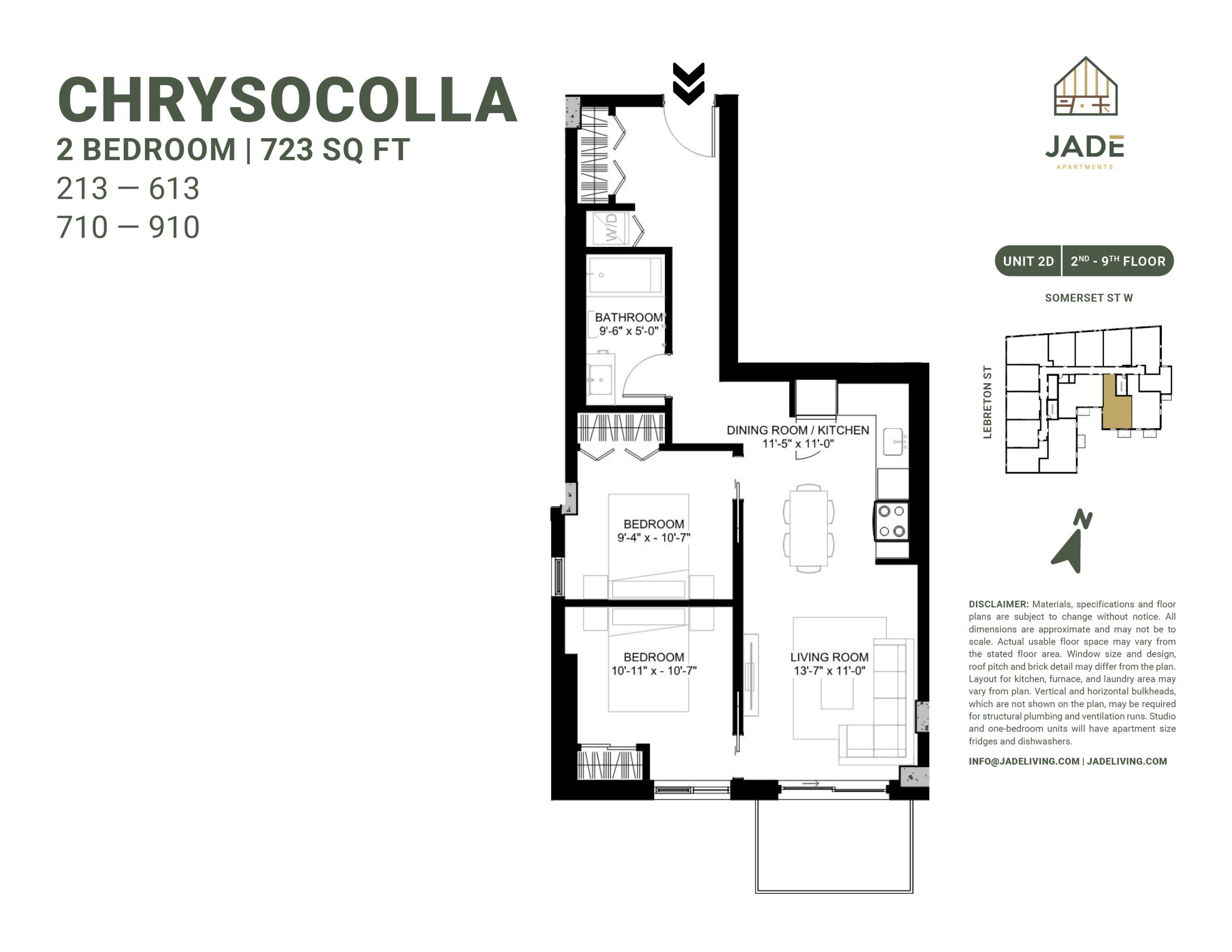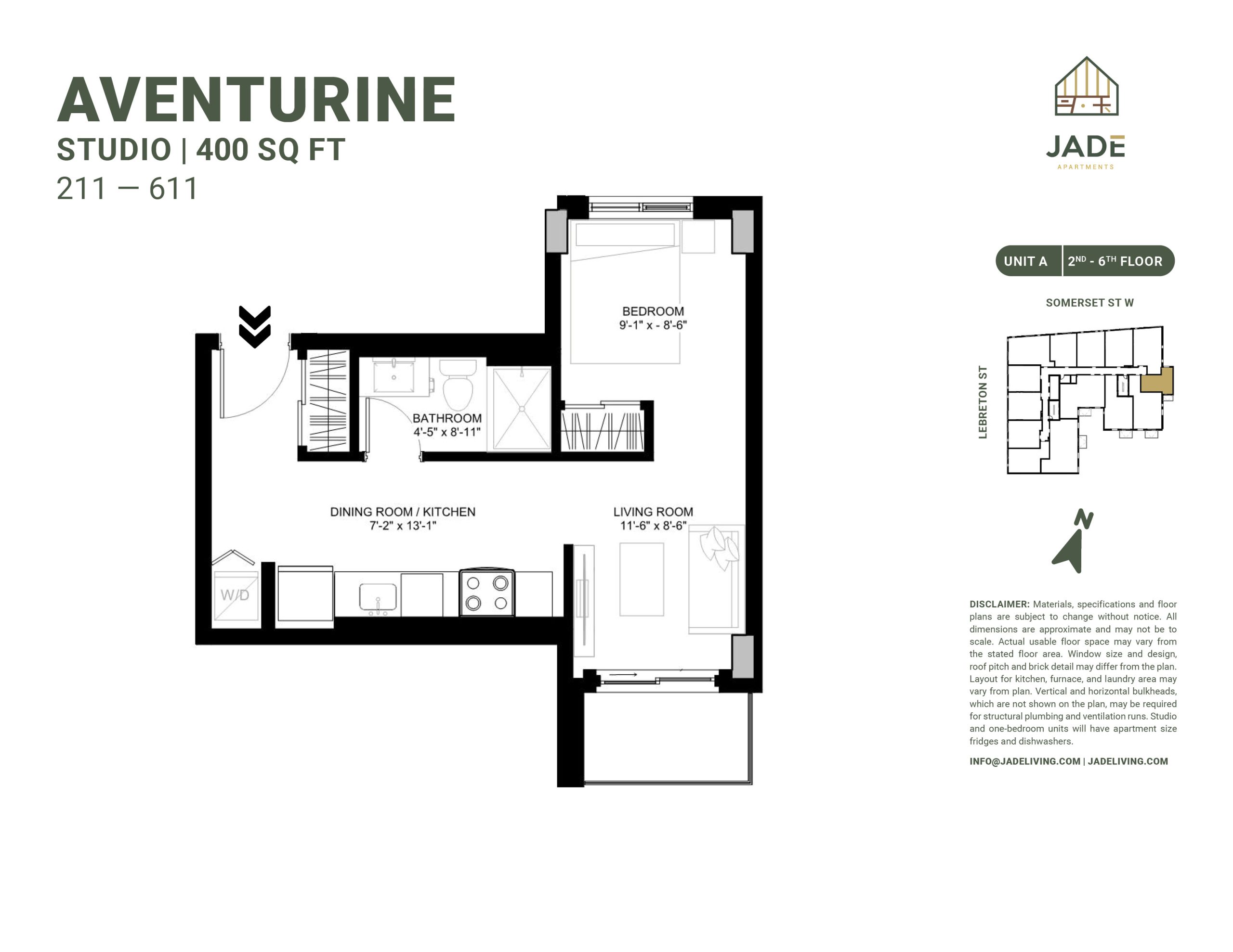JADE offers 103 rental units of superior quality over nine storeys, with a choice of smartly configured studios and 1, 2 and 2 + den-bedroom suites, ranging in size from 400 to 1,004 sq. ft.